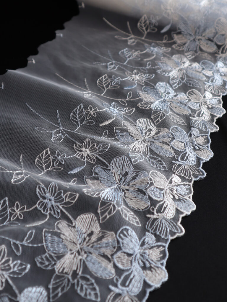 2m mirrored set white/blue embroidered voile lace trim for sewing underwear, floral embroidered lace for bra making