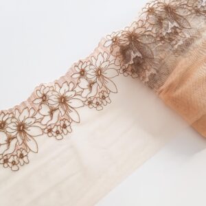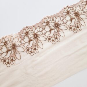 2m mirrored set beige embroidered voile lace trim for sewing underwear, floral embroidered lace for bra making