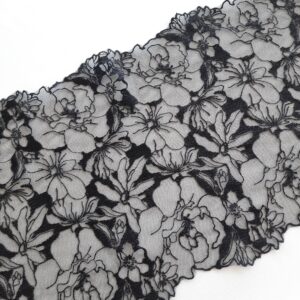 Black floral embroidered tulle fabric