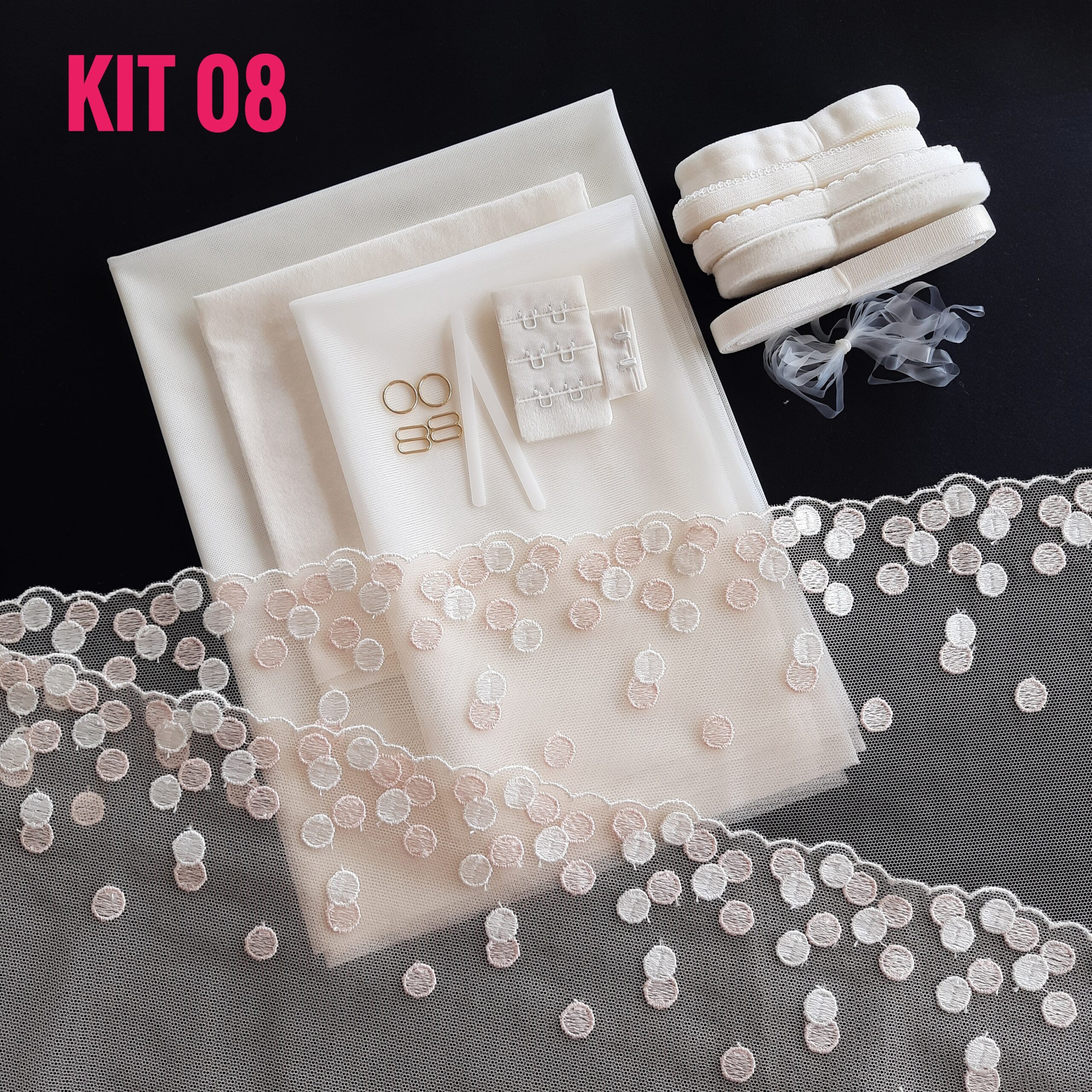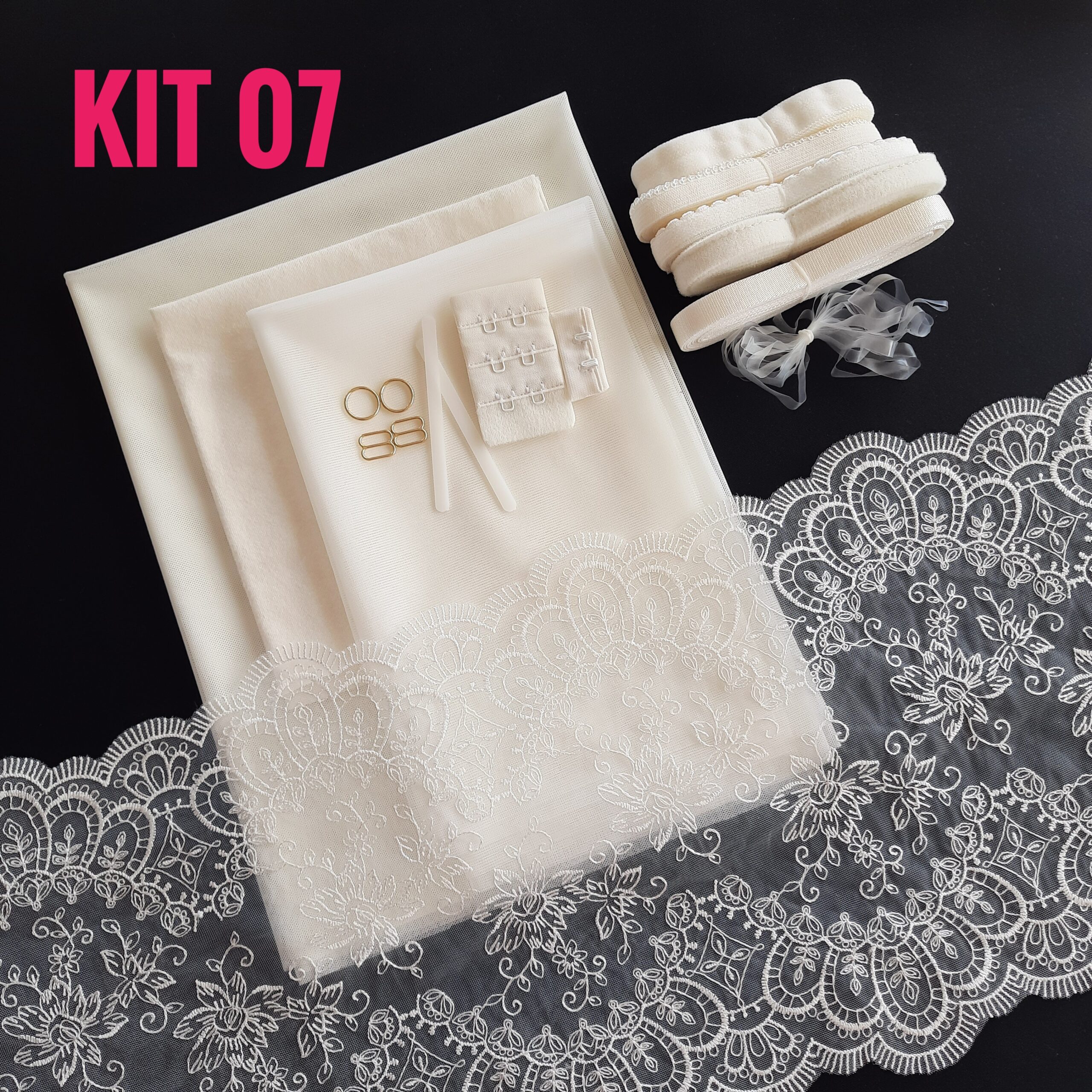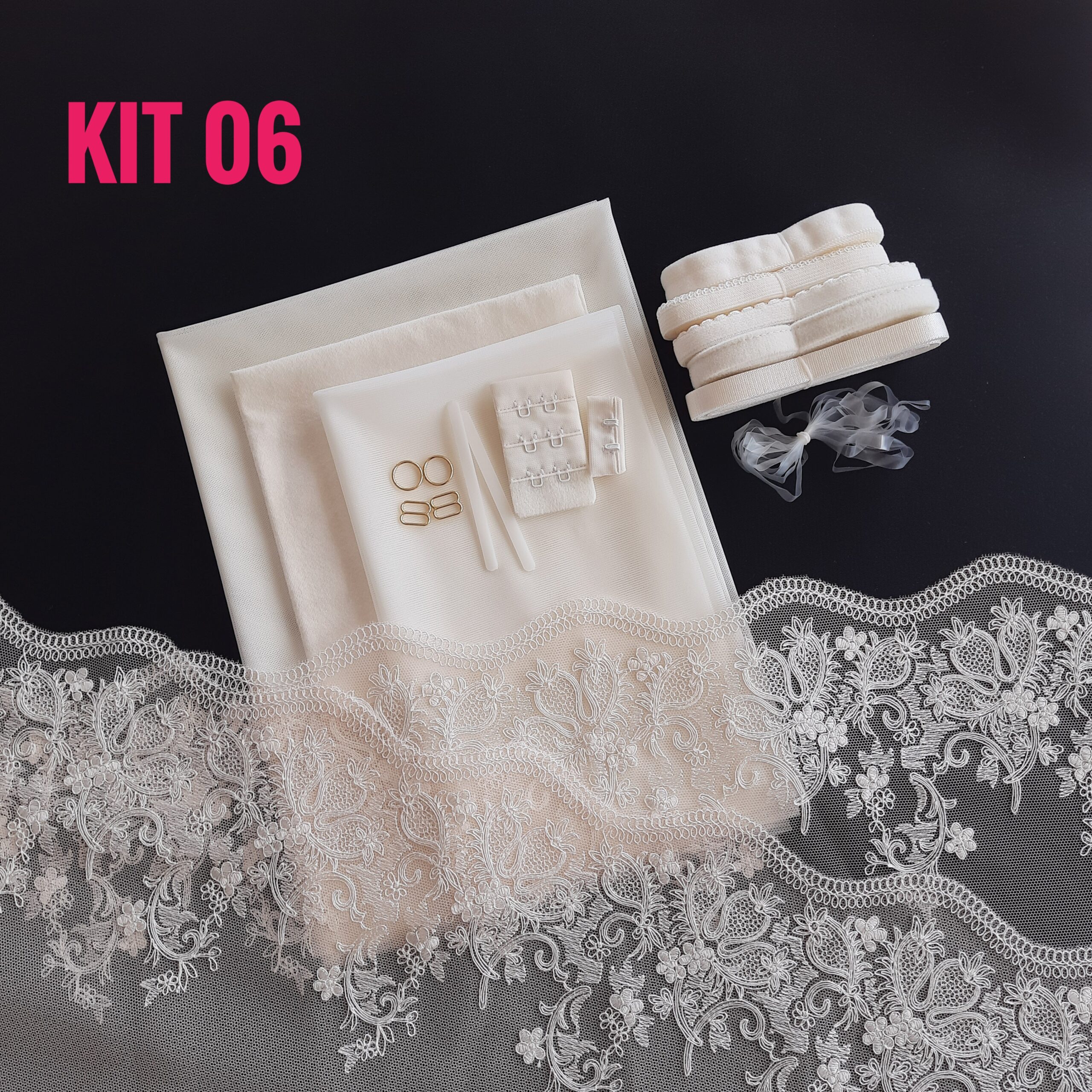This sewing kit includes all you need to create one set of bra + panty. You’ll just need to choose the underwires.