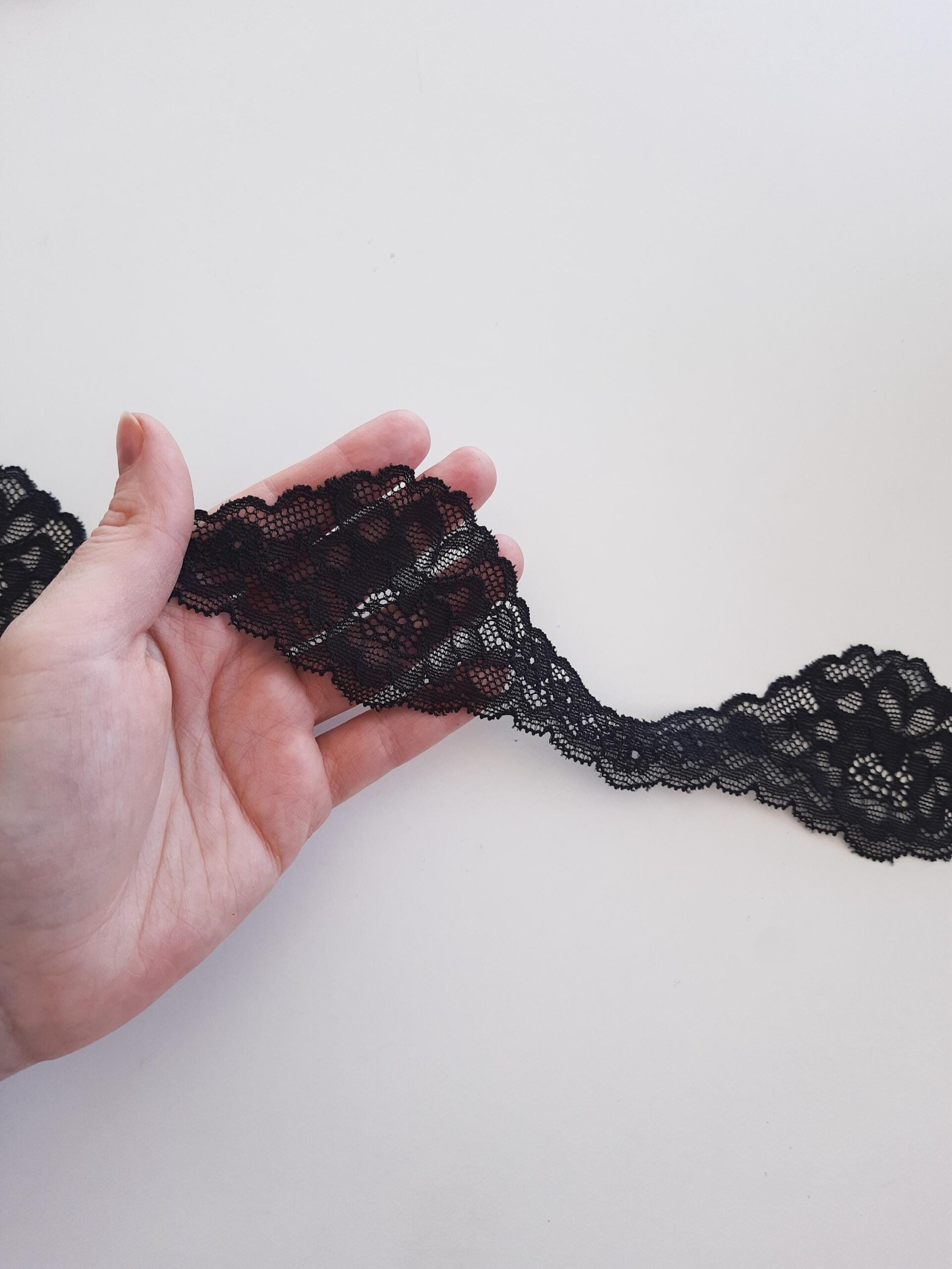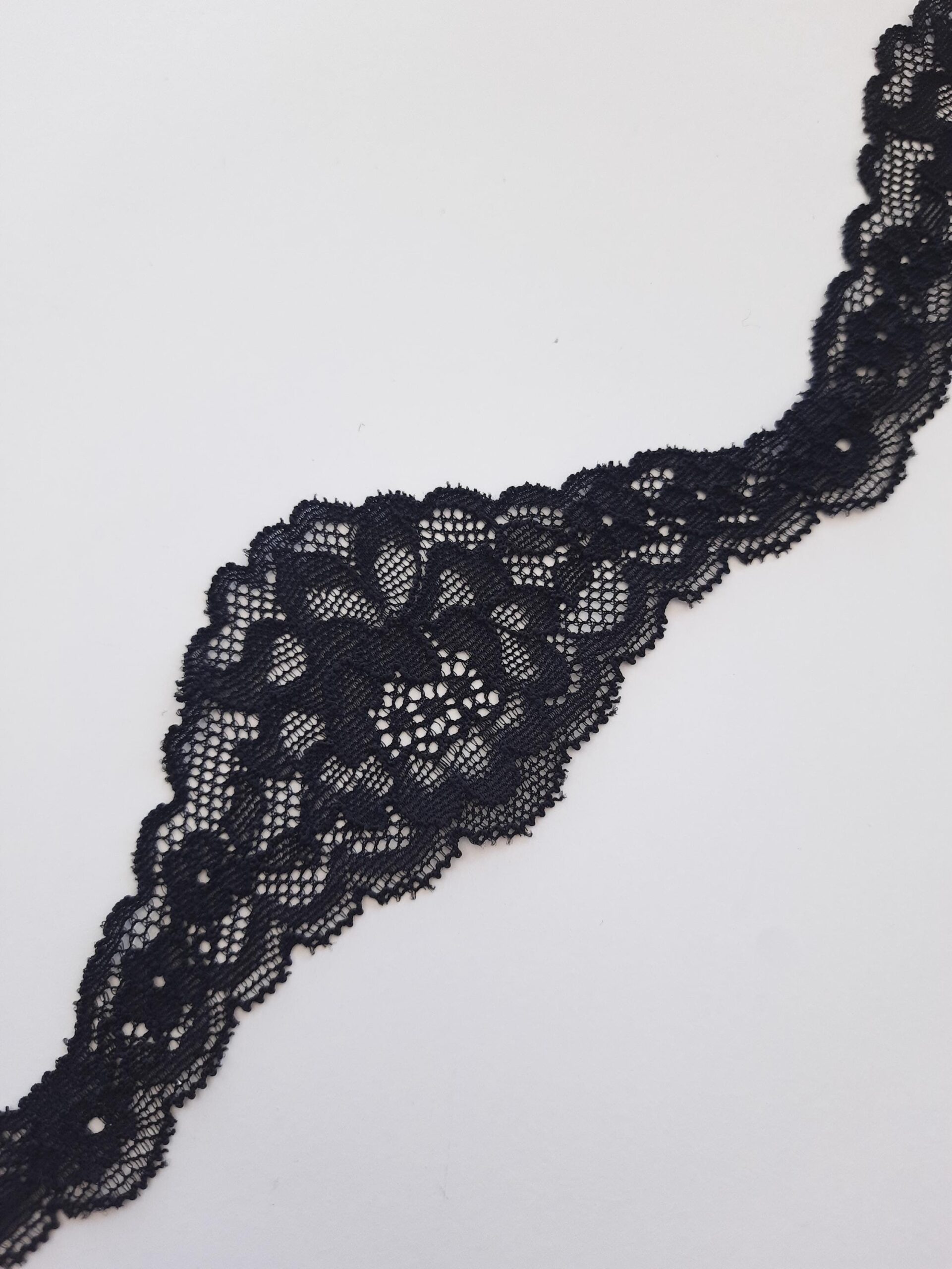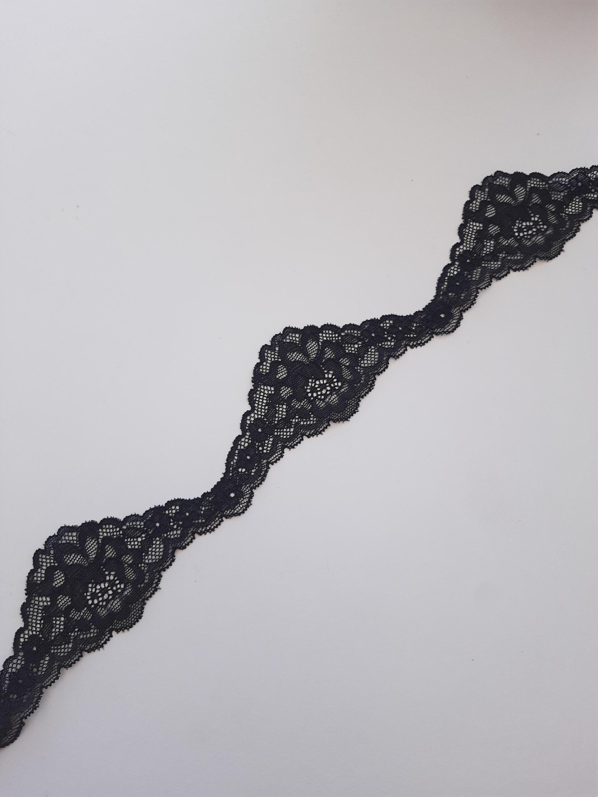 black narrow stretch lace trim, width 5.5 cm/ 1.96”