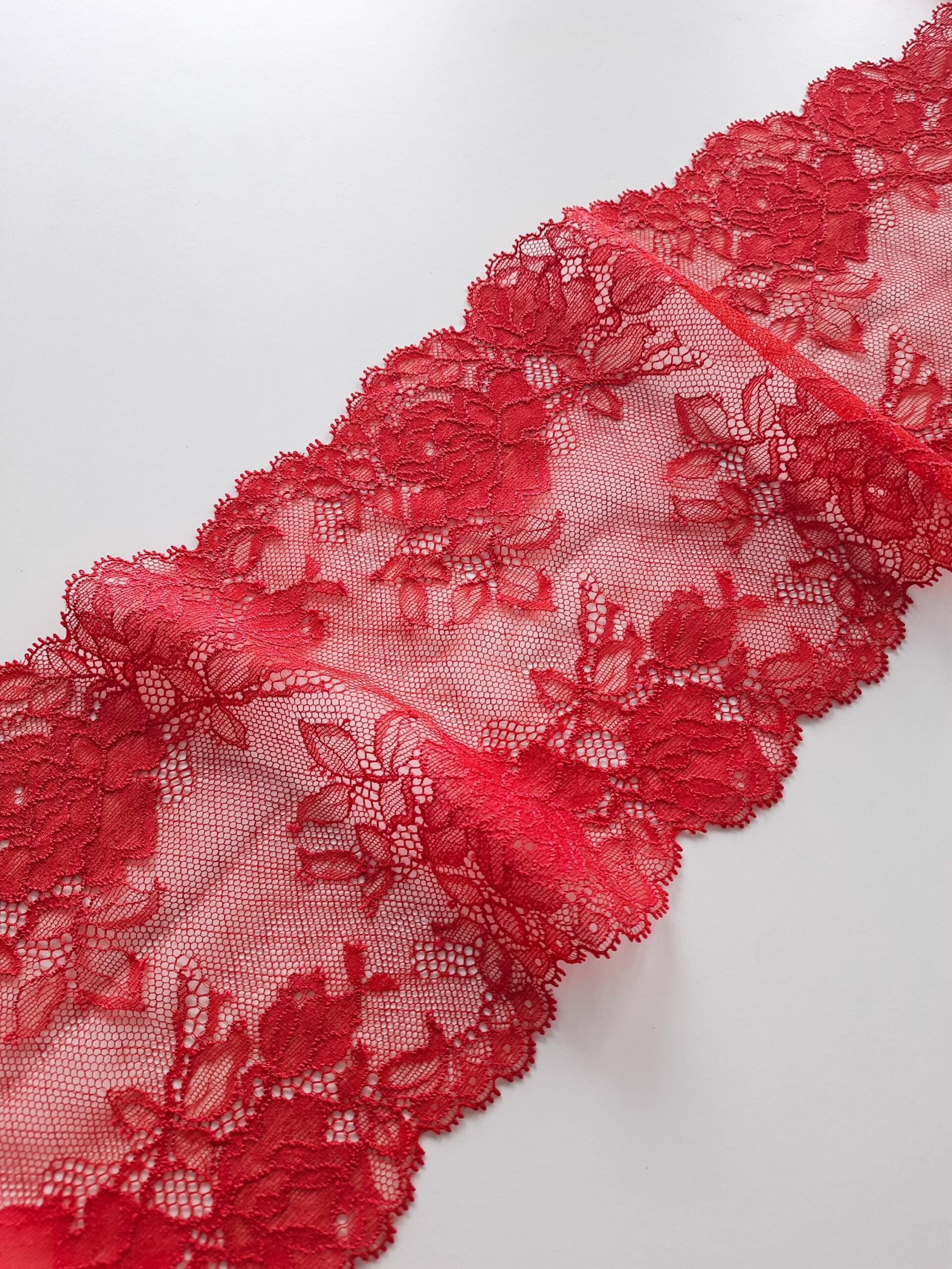 • red floral elastic lace trim for sewing lingerie, 16 cm/ 6.29 red floral elastic lace trim for sewing lingerie, 16 cm/ 6.29" wide 4,30€