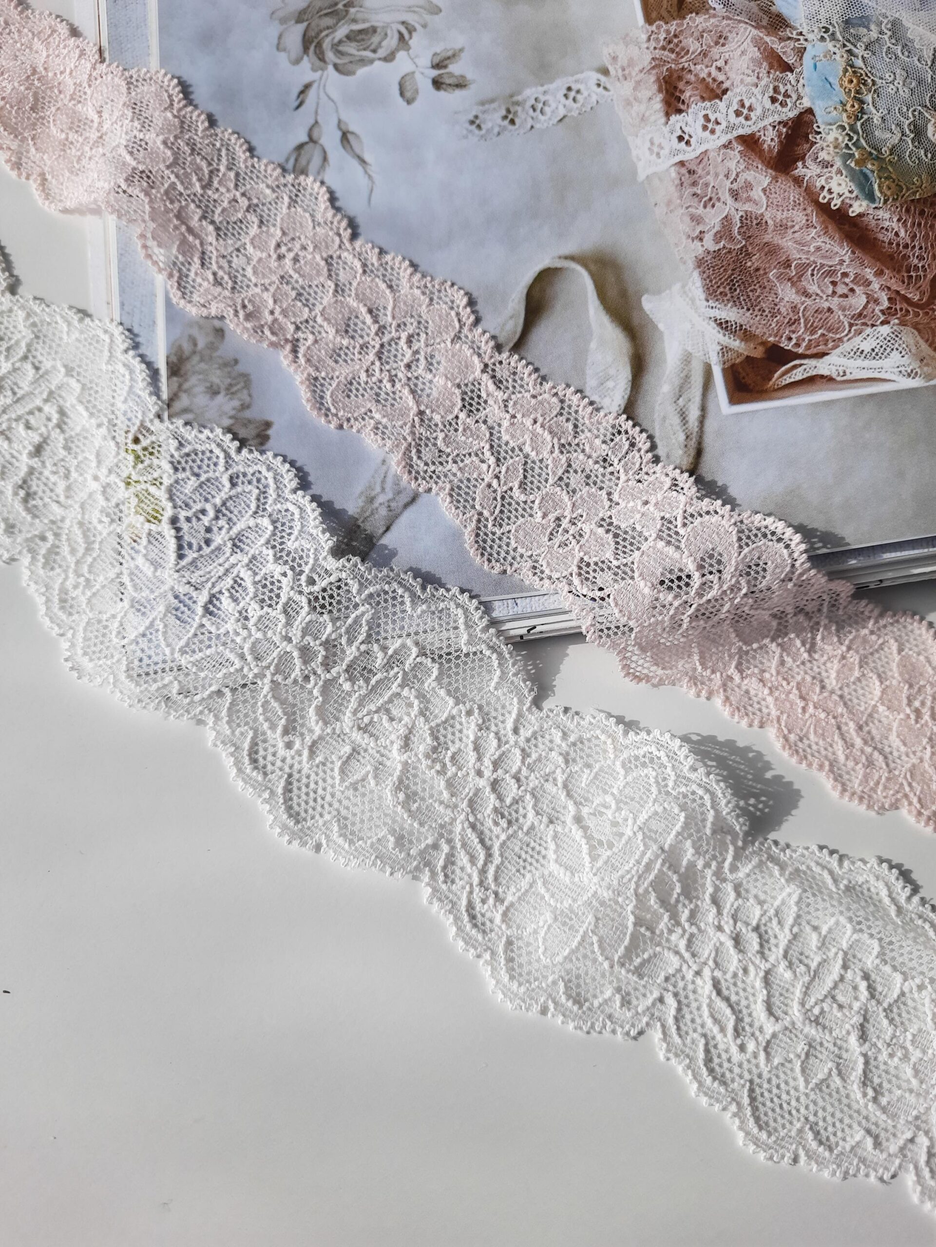 stretch lace trim, width 3,5 cm/ 1.37” or 5 cm/1.96”